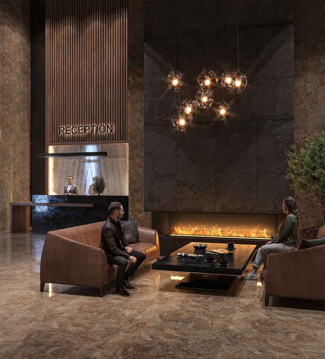 Thanks to the innovative Optimyst® technology, water is transformed by ultrasound into a fine mist, which is transformed into a lively play of flames by LED diodes in warm or coloured light. The result: a deceptively real fireplace ambience - without any combustion, soot or heat.